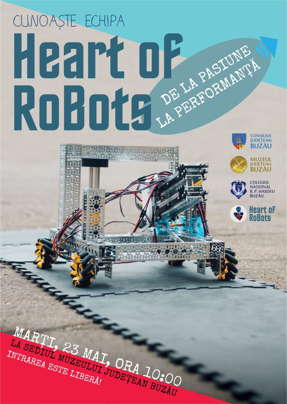 Muzeul Județean Buzău, instituție de cultură, artă și cercetare, ce funcționează sub autoritatea Consiliului Județean Buzău, organizează, în parteneriat cu Colegiul Național „Bogdan Petriceicu Hasdeu” Buzău, conferința „Cunoaște echipa Heart of RoBots: de la pasiune la performanță”.