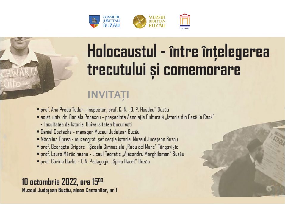 Muzeul Județean Buzău, instituție de cultură, artă și cercetare, ce funcționează sub autoritatea Consiliului Județean Buzău, cu sediul în str. Aleea Castanilor, nr. 1, mun. Buzău, organizează, în parteneriat cu Inspectoratul Școlar Județean Buzău, dezbaterea „Holocaustul -între înțelegerea trecutului și comemorare”.