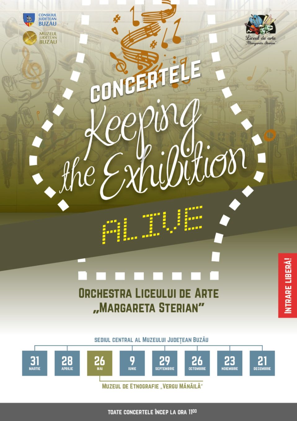 Muzeul Județean Buzău, instituție de cultură, artă și cercetare, ce funcționează sub autoritatea Consiliului Județean Buzău, organizează, în parteneriat cu Liceul de Arte „Margareta Sterian”, programul de concerte Keeping the exhibition alive, ajuns anul acesta la ediția a V-a.