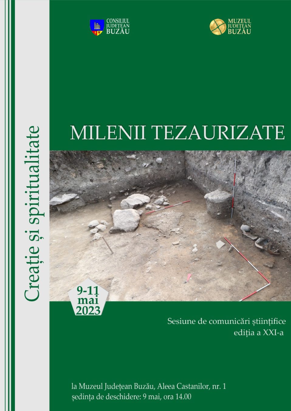 Muzeul Județean Buzău, instituție de cultură ce funcționează sub autoritatea Consiliului Județean Buzău, cu sediul în municipiul Buzău, Aleea Castanilor nr. 1, jud. Buzău anunță organizarea celei de-a XXI-a ediții a Sesiunii naționale de comunicări științifice Milenii tezaurizate. Creație și spiritualitate.