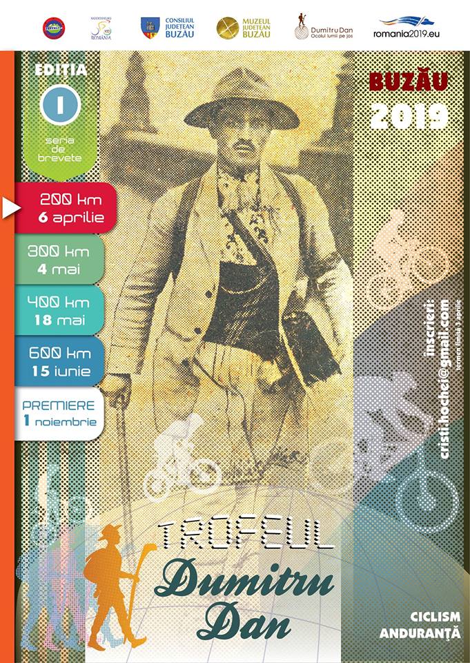 Muzeul Județean Buzău a acceptat provocarea Asociației Club Sportiv PENTELEU Buzău de a participa la organizarea în premieră a Trofeului Dumitru Dan – brevete de anduranță pentru cicliști amatori (200 km, 300 km, 400 km, 600 km). Cursa, prima de acest gen desfășurată pe teritoriul județului Buzău, este dedicată primului globe-trotter român, Dumitru Dan, personalitate căreia instituția noastră i-a dedicat un întreg spațiu expozițional. Călătoria acestuia în jurul lumii a suscitat interes încă de la jumătatea secolului XX.